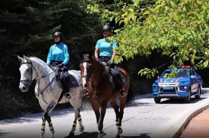 Bolu'daki Abant Gölü Ulusal Parkı'nda atlı jandarma timleri, yaz döneminde artan ziyaretçi yoğunluğunda güvenliği...
