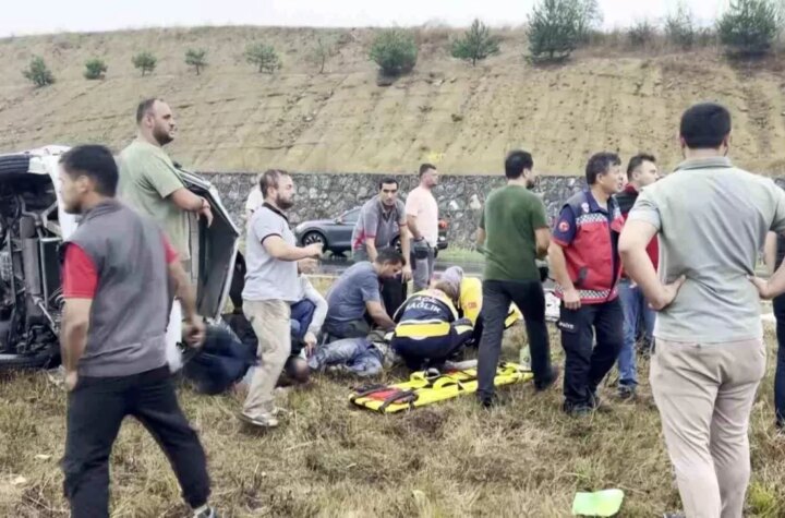 Sakarya'nın Adapazarı-Kaynarca yolunda doğalgaz firmasına ilişkin bir minibüs, kayganlaşan yolda devrildi. Kazada 3 kişi...