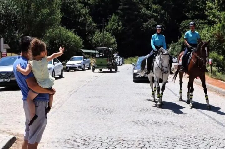 Bolu'daki Abant Gölü Ulusal Parkı'nda atlı jandarma timleri, yaz döneminde artan ziyaretçi yoğunluğunda güvenliği...