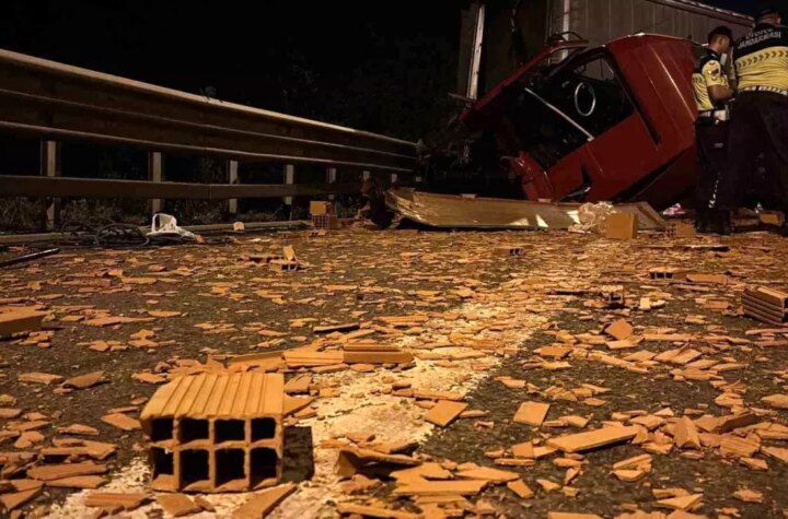 TEM Otoyolu Bolu Dağı Tüneli çıkışında, denetimden çıkan bir tırın tuğla yüklü tıra çarpması...