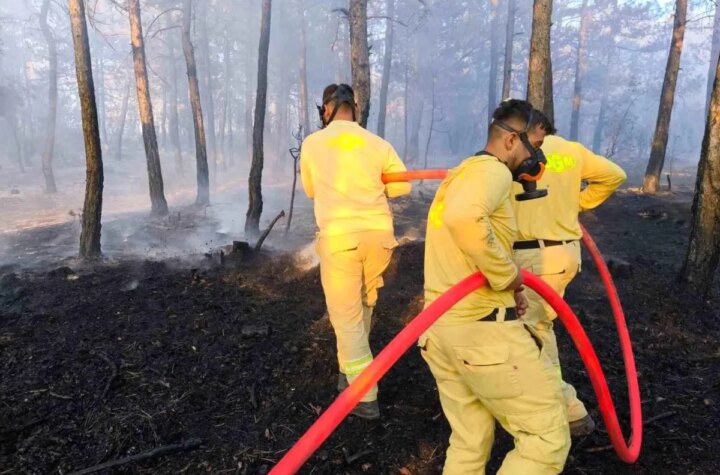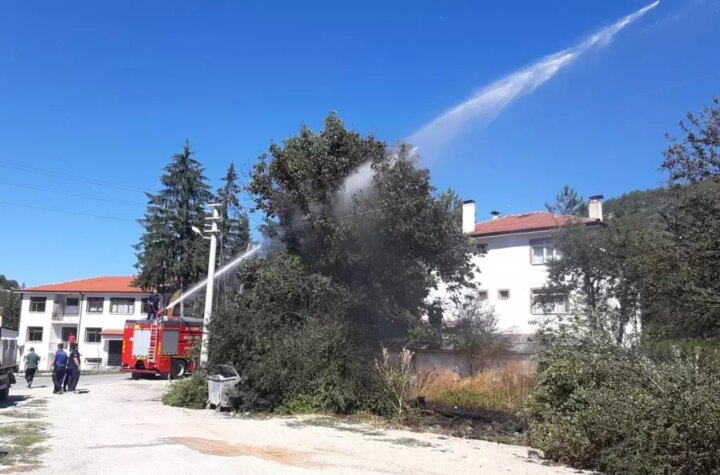 Bolu'nun Mudurnu ilçesinde kopan elektrik telleri nedeniyle çıkan yangın, etrafta bulunan meskenlere sıçramadan denetim...