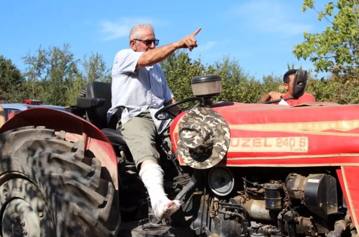 Sakarya'nın Akyazı ilçesinde çıkan orman yangınına, ayağı kırık olmasına karşın traktörüyle su taşıyarak müdahale...